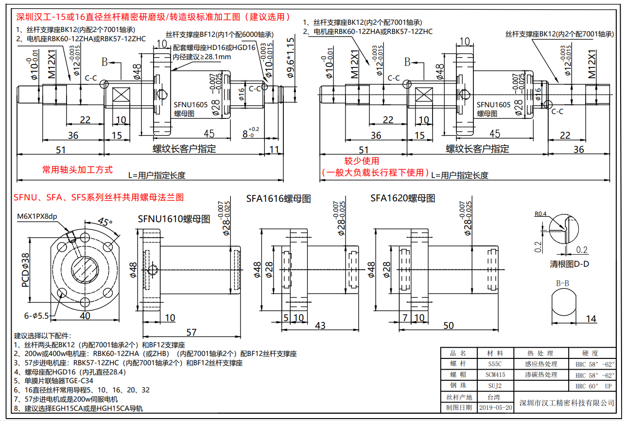 4、螺母座配HGD16和HGD16L(內孔直徑28.4)、HD16(鋁合金開口型)