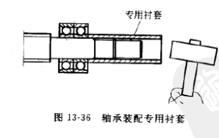 由于軸承內圈與絲杠之間為過盈配合,因此裝配兩側支撐單元軸承時不能使軸承直接受到沖擊,需要使用專用的軸承裝配襯套,如圖13-36所示