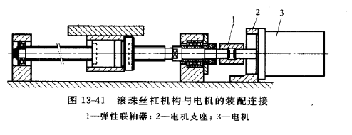 電機與絲杠一般通過彈性聯軸器來連接。由于彈性聯軸器在運行時只允許絲杠軸端與電機輸出軸的位置度存在很小的偏差,最理想的情況是兩根軸的中心位于一條直線上因此裝配電機時的調整原理與滾珠絲杠的調整原理是相同的,需要對電機輸出軸在水平面左右方向、豎直面高度方向進行精確的調整,這樣才能確保彈性聯軸器、電機及滾珠絲杠的工作壽命。